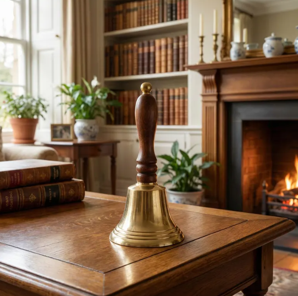Celebrate special moments with this handcrafted brass hand bell, ideal for teachers, cancer survivors, ceremonies, church altars, dinner calls, and home décor. Crafted from solid brass with a smooth wooden handle, it delivers a clear, loud ring and offers custom engraving to create a meaningful keepsake.
